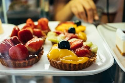 上記と少し重複してしまいますが、新鮮なフルーツを使ったカラフルなタルトは、キラキラしています