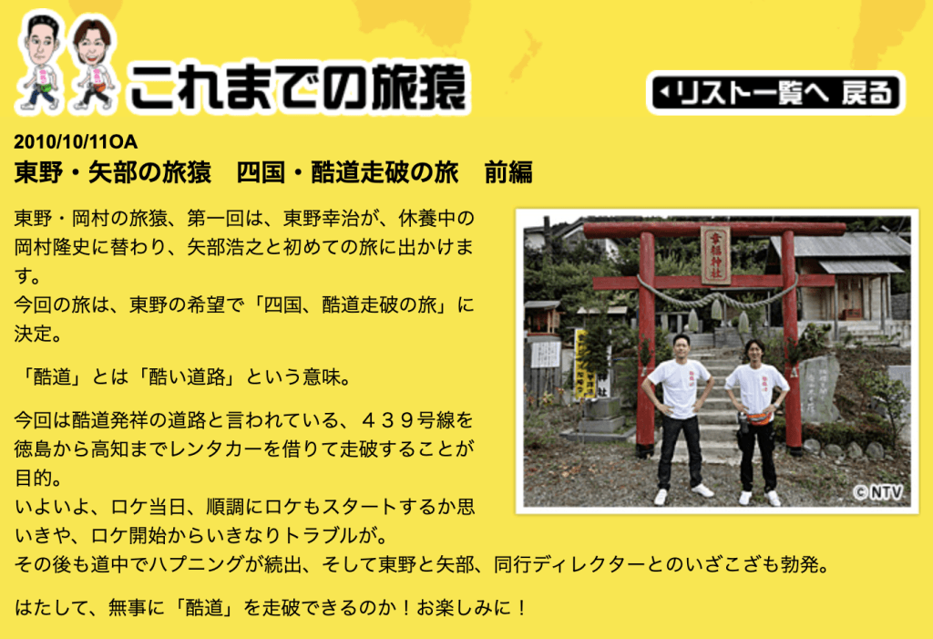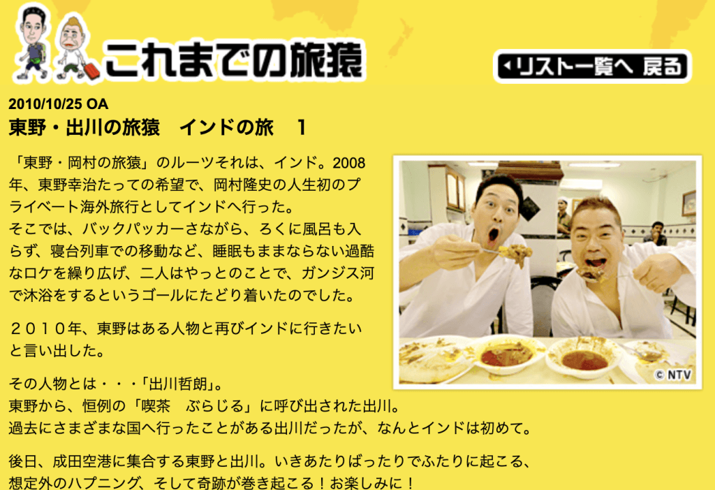 初期の頃はインドやベトナム、ハワイなど海外を舞台にしたアグレッシブな企画が話題を呼んでいましたが、年月を重ねるにつれ、東野幸治さんと岡村隆史さんが旅に慣れてきた印象もありますよね。