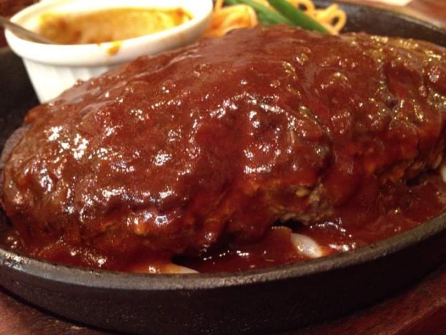 レギュラーサイズで400g~500gはあろうかという巨大なハンバーグは、見た目のインパクトだけでなく、味も絶品。肉々しくジューシーでありながら、ふっくらと柔らかい食感が特徴です。